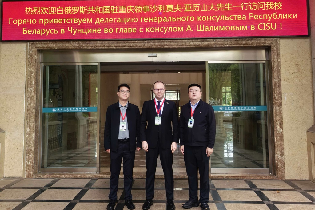 13 красавіка 2026 г. консул Генеральнага консульства Рэспублікі Беларусь Аляксандр Шалімаў па запрашэнні Дэпартамента камерцыі правінцыі Сычуань наведаў Чэндускі ўніверсітэт замежных моў, дзе выступіў з дакладам аб беларуска-кітайскіх адносінах.