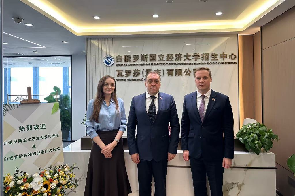 2025年10月28日,白罗斯共和国驻重庆总领事叶梅利扬诺夫与白罗斯国立经济大学校长阿列克谢•叶戈罗夫共同出席白罗斯国立经济大学重庆招生中心揭牌仪式。