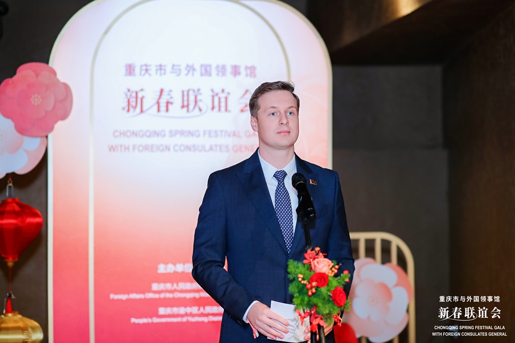 2026年2月6日,白罗斯共和国驻重庆总领事德米特里·叶梅利扬诺夫出席了庆祝中国农历新年的外交招待会,并代表驻重庆外交使团致贺词。